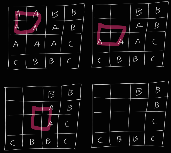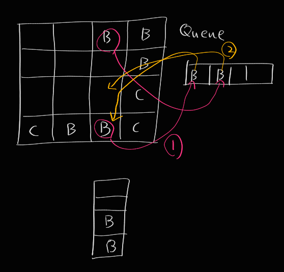 마지막으로 터트린 후 빈 공간을 정리하는 것을 큐를 활용해 선입 선출로 아래서부터 채워나가는 방법으로 구현했다.