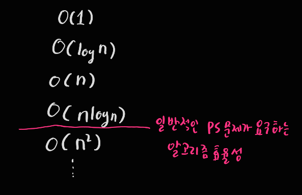 보통 O(n2) 을 넘어가면 수행 시간이 급격하게 증가하기에 대부분의 PS 문제에서 요구하는 효율성은 O(nlogn) 이하이며 해당 시간복잡도를 넘은 솔루션을 구현하면 정확성을 다 통과하더라도 절반 이하로 점수를 받게 된다. 따라서 문제를 해결할 수 있는 열쇠가 될 대표적인 알고리즘을 숙지하고 있어야하며 전공 이수과정 및 PS 에서 자주 출현하는 알고리즘들은 다음과 같다.