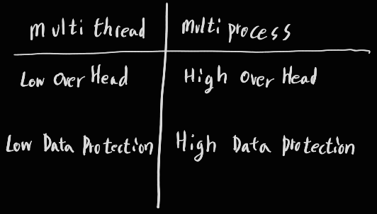 여기서 문제는 하나의 프로세스가 실행되는데 하나의 스레드만 실행되는 것이 아니라는 것이다. 예를 들어 커다란 식당에서 가지각색의 요리를 주문 받아 만든다고 가정해보자. 요리를 만들기 위해선 특정 공간만큼의 주방이 있어야하고 주방에 식기와 재료들이 갖춰져야 한다. 이때 A라는 음식의 요청이 들어왔고 A 라는 요리를 만드는 도중에 다시 A 요리 요청이 들어오면 A 를 만들기 위한 똑같은 주방에 식기와 재료를 갖춰야 할까? 아니다 그냥 기존의 주방에서 똑같은 과정으로 요리를 진행하면 다시 주방을 준비하는 시간을 줄일 수 있으며 이러한 동작 방식을 멀티 스레드라고 한다.