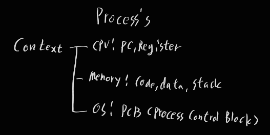 문맥에는 프로세스가 실행되기 위한 CPU 정보, 메모리 정보, OS 자원 정보 이며 이는 각각 다음과 같다.