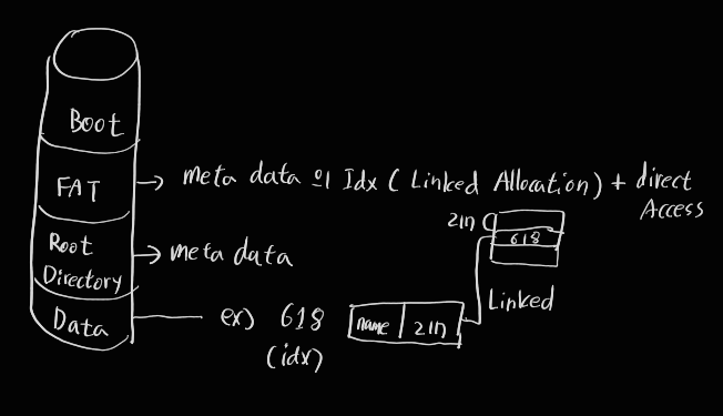 Index Allocation 방식으로 빈 공간의 Pointer 가 다른 빈 공간들을 가르킴. 1:N