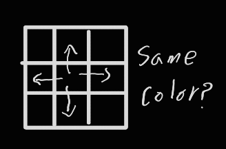 해당 좌표들의 색깔 정보가 일치할 경우에만 영역의 넓이를 확장하고